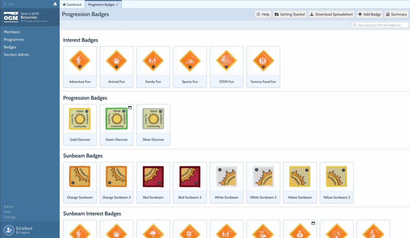 The parent portal allows parents to help you with your administration and gives them the tools to sign up to events, see the programme, view badge progress and more.